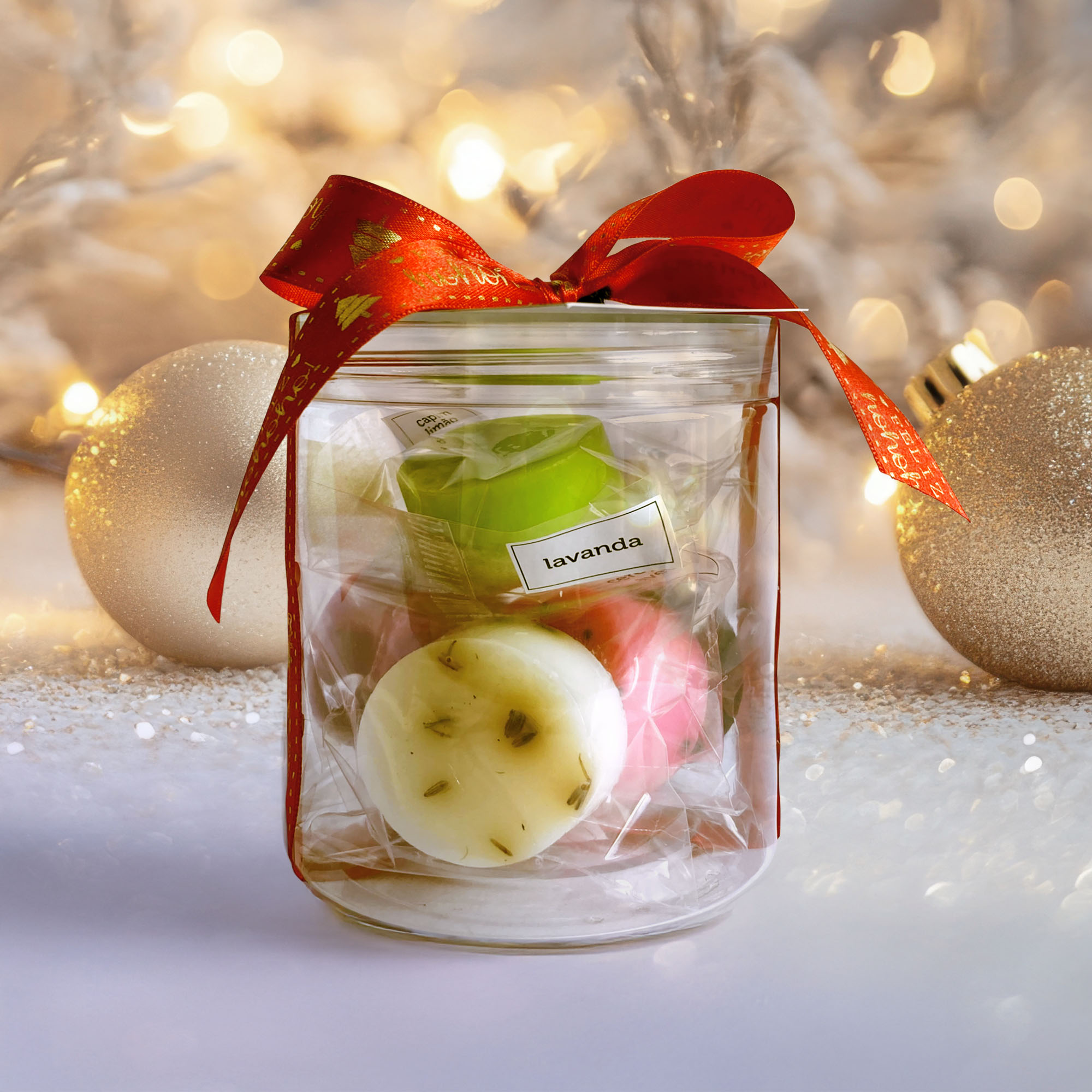 Mini Sabonetes de diversas fragrâncias numa embalagem natalina