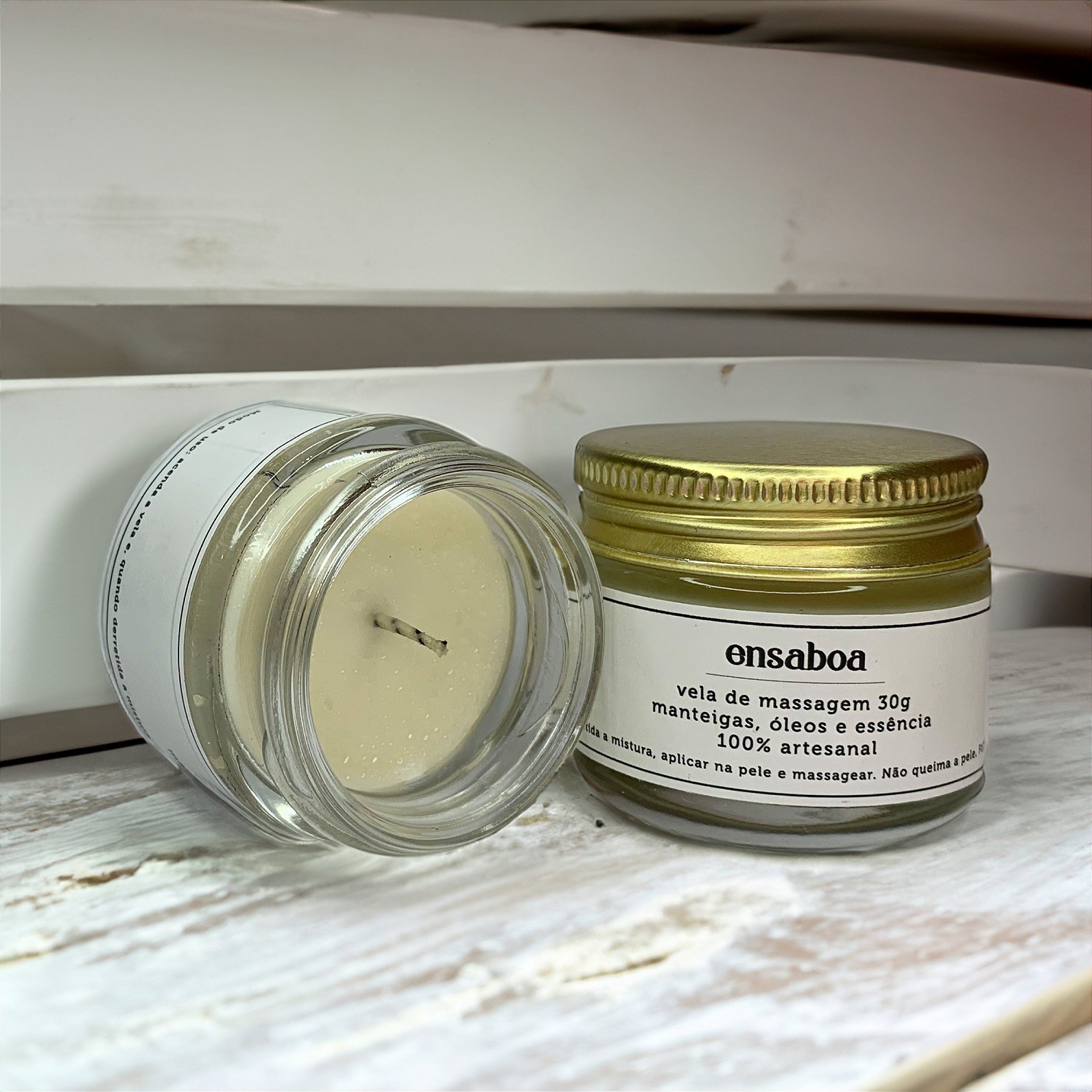 Modo de uso: acenda a vela e, quando derretida a mistura, aplicar na pele e massagear. Não queima a pele.